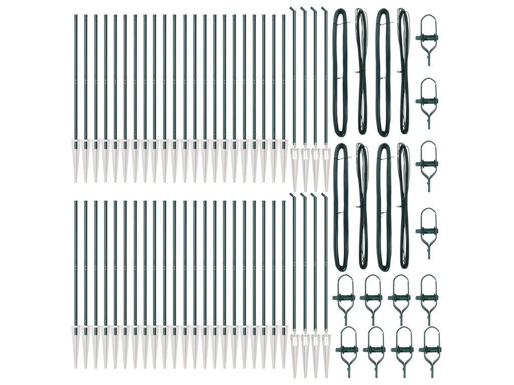 - Delivery Contains: 44 x Post, 8 x Angle Post, 44 x Spike, 8 x Angle Spike, 44 x Plastic Cap, 132 x Plastic Tension Wire Supporter, 132 x Crew on the Plastic Supporter, 8 x Angle Post Cap, 8 x Angle Post Hardware, 8 x Angle Post Hardware Screw M6X25, 104 x Male Part Screw M6X40, 12 x Tensioner, 4 x 25m Binding Wire, 4 x 80m Tension Wire