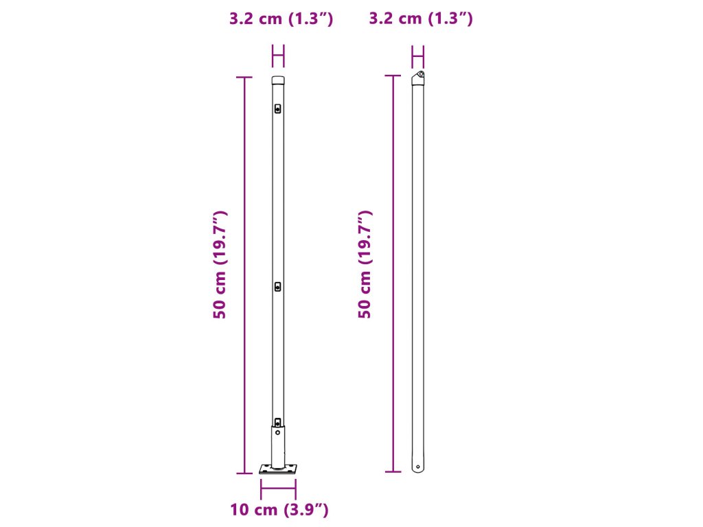 - Rozměry: 3,2 x 3,2 x 88,5 cm (D x Š x V)