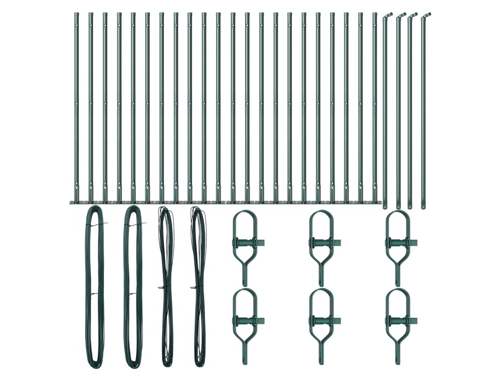 - Kompletní sada: Tato sada obsahuje 22 sloupků, základové desky, krytky, napínací dráty a veškeré další příslušenství potřebné pro dokonalé oplocení.