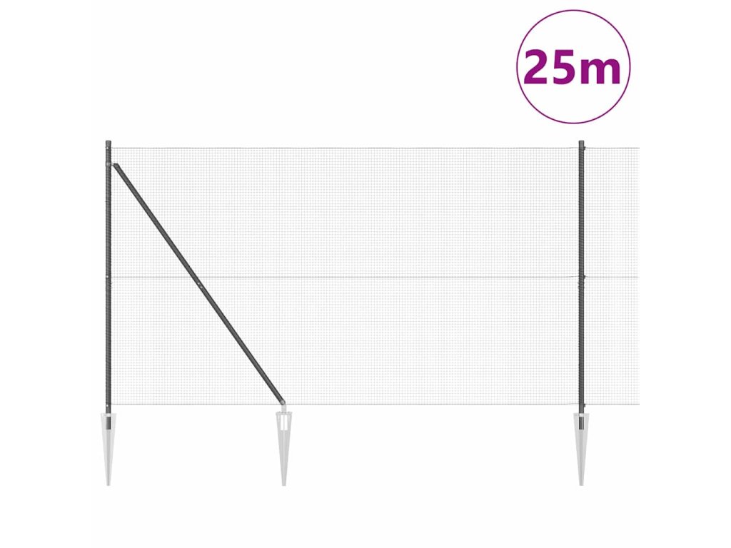 - 1 x Oplocení, 11 x Sloupek, 2 x Úhlový sloupek, 11 x Hrot, 2 x Úhlový hrot, 11 x Plastová krytka, 33 x Plastový podpěra napínacího drátu, 2 x Krytka úhlového slouku, 2 x Hardware úhlového sloupku, 3 x Napínač, 1 x 25 m Vázací drát, 1 x 80 m Napínací drát