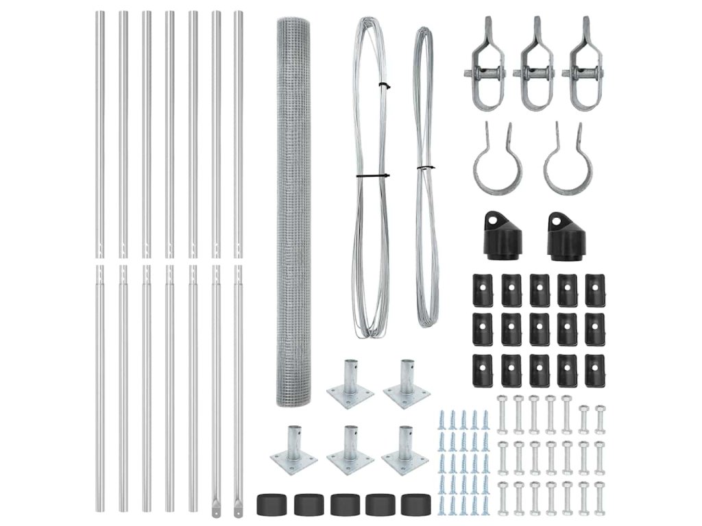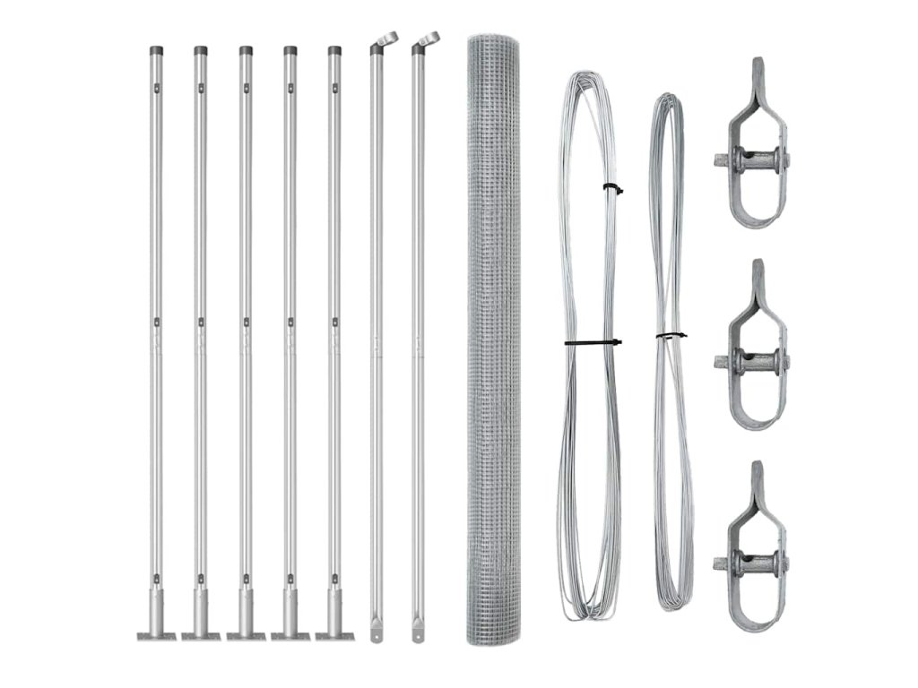 - 1 x Oplocení, 5 x Sloupek, 2 x Úhlový sloupek, 5 x Základová deska, 5 x Plastová krytka, 15 x Plastový podpěra napínacího drátu, 2 x Krytka úhlového sloupku, 2 x Hardware úhlového sloupku, 3 x Napínač, 1 x 25 m Vázací drát, 1 x 33 m Napínací drát