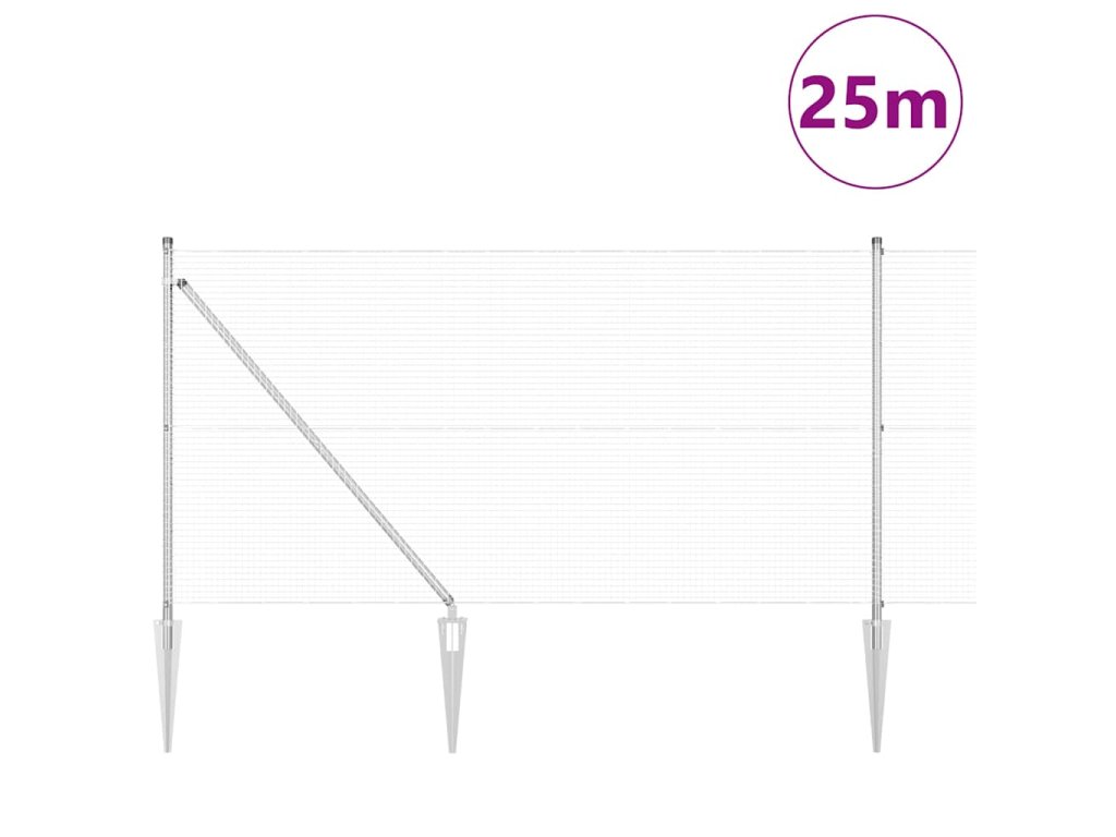 - 1 x Oplocení, 11 x Sloupek, 2 x Úhlový sloupek, 11 x Hrot, 2 x Úhlový hrot, 11 x Plastová krytka, 33 x Plastový podpěra napínacího drátu, 2 x Krytka úhlového slouku, 2 x Hardware úhlového sloupku, 3 x Napínač, 1 x 25 m Vázací drát, 1 x 80 m Napínací drát
