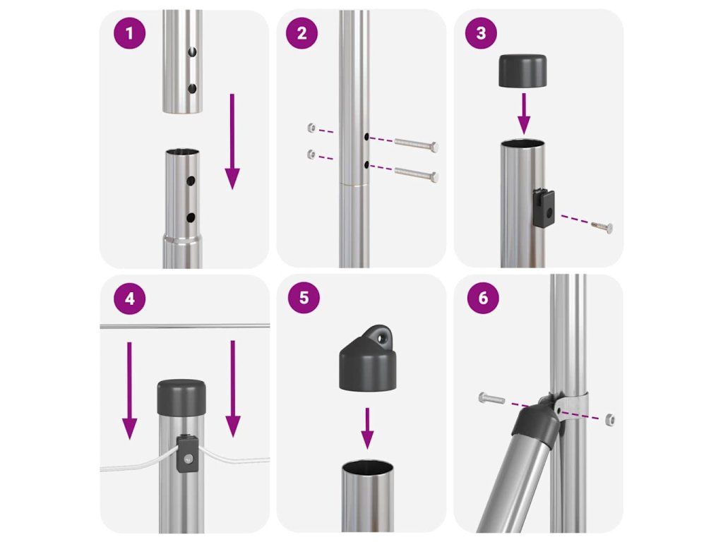 - 1 x Oplocení, 22 x Sloupek, 4 x Úhlový sloupek, 22 x Plastová krytka, 66 x Plastový podpěra napínacího drátu, 4 x Krytka úhlového sloupku, 4 x Hardware úhlového sloupku, 6 x Napínač, 2 x 25 m Vázací drát, 2 x 80 m Napínací drát