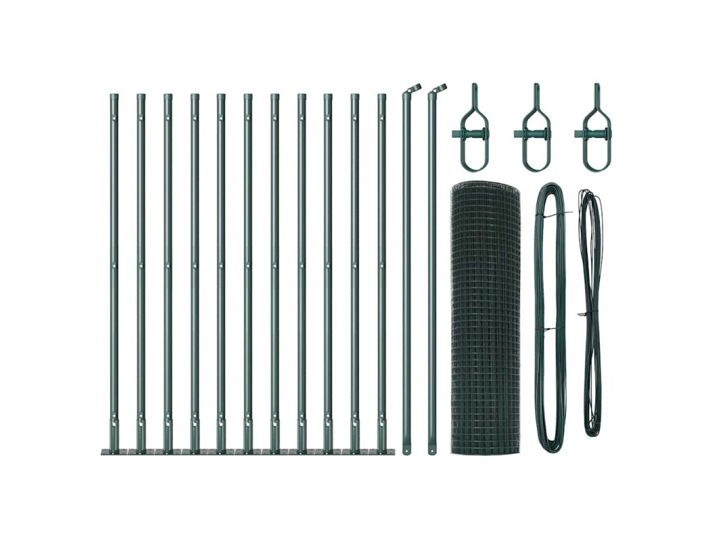 - 1 x Oplocení, 11 x Sloupek, 2 x Úhlový sloupek, 11 x Základová deska, 11 x Plastová krytka, 33 x Plastový podpěra napínacího drátu, 2 x Krytka úhlového slouku, 2 x Hardware úhlového sloupku, 3 x Napínač, 1 x 25 m Vázací drát, 1 x 80 m Napínací drát