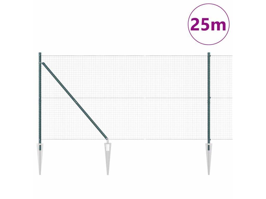 - 1 x Oplocení, 11 x Sloupek, 2 x Úhlový sloupek, 11 x Hrot, 2 x Úhlový hrot, 11 x Plastová krytka, 33 x Plastový podpěra napínacího drátu, 2 x Krytka úhlového slouku, 2 x Hardware úhlového sloupku, 3 x Napínač, 1 x 25 m Vázací drát, 1 x 80 m Napínací drát