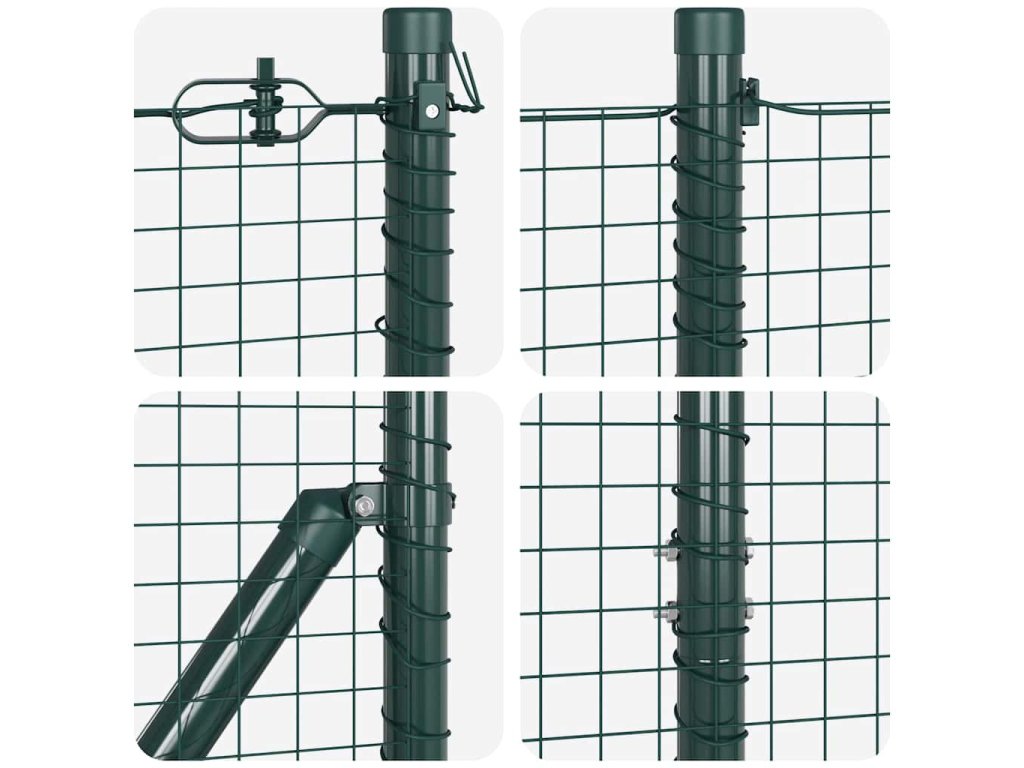 Odolnost proti UV záření: Plot je vyroben z vysoce kvalitní oceli, ošetřené speciálním UV-odolným materiálem, aby odolávalo prodloužené expozici slunečnímu záření. To nejen chrání integritu a vzhled plotu, ale také zajišťuje, že časem zůstane vypadat jako nový. To je ideální pro venkovní použití, protože odolává vyblednutí a udržuje svůj živý vzhled po celý rok.,Povětrnostně odolné panely: Navrženo pro všechny klima, tyto panely poskytují vynikající odolnost proti dešti, větru a sezónním vlivům. Práškovaná povrchová úprava dodává další vrstvu ochrany, což činí tento plot ideálním pro pobřežní, městské nebo venkovské prostředí, kde může být počasí nepředvídatelné. Jeho odolnost zaručuje, že vaše plotové řešení vydrží s minimální údržbou.,Vlastnosti odolné proti korozi: Tento plot nejenže odolává povětrnostním vlivům, ale také odolává rzi a korozi v průběhu času. Specializovaný nátěr aplikovaný na ocel zajišťuje dlouhotrvající výkon bez rzi, což poskytuje klid na duši, že po instalaci bude plot vyžadovat minimální údržbu a udrží svou strukturální integritu po mnoho let.,Jednoduchost sestavení: Ačkoli je sestavení nutné, jednoduché pokyny výrobce činí úkol zvládnutelným pro majitele domů. Jakmile je postavený, plot poskytuje nenápadnou, ale účinnou periferní bariéru, která vytváří bezpečné a přitažlivé prostředí, jež se bezproblémově integruje do zahradních a terasových prostor.,Další zabezpečovací prvek: Pro ty, kdo mají přísné požadavky na zabezpečení, pokyny k sestavení doporučují ujistit se, že dno plotu se dotýká země. To zabraňuje nežádoucím mezerám a nabízí lepší udržení nejen pro domácí mazlíčky a děti, ale také dále zpevňuje váš venkovní prostor proti vniknutí.- Barva: Zelená