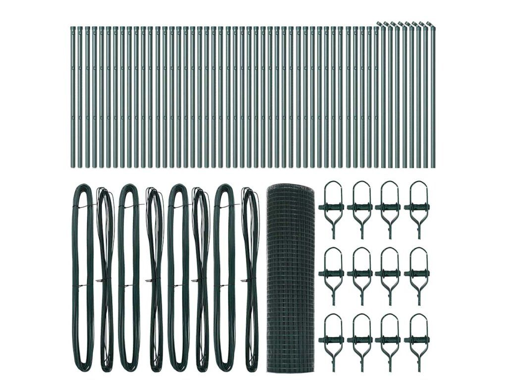 - 1 x Oplocení, 44 x Sloupek, 8 x Úhlový sloupek, 44 x Plastová krytka, 132 x Plastový podpěra napínacího drátu, 8 x Krytka úhlového sloupku, 8 x Hardware úhlového sloupku, 12 x Napínač, 4 x 25 m Vázací drát, 4 x 80 m Napínací drát
