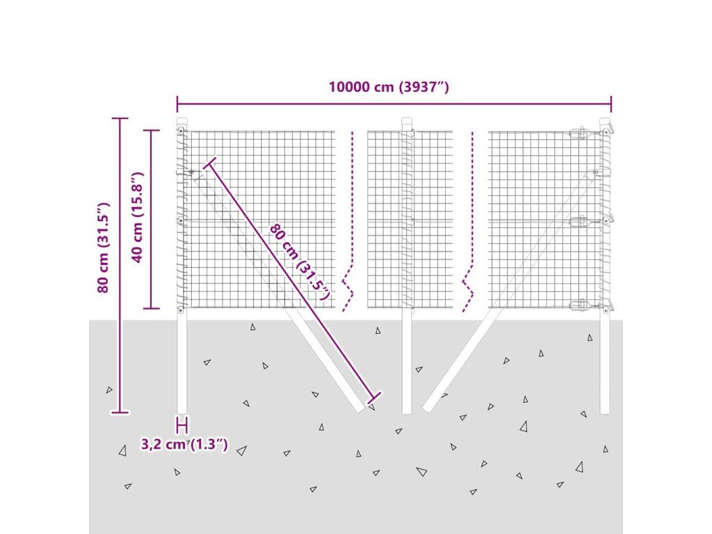 - 1 x Oplocení, 44 x Sloupek, 8 x Úhlový sloupek, 44 x Plastová krytka, 132 x Plastový podpěra napínacího drátu, 8 x Krytka úhlového sloupku, 8 x Hardware úhlového sloupku, 12 x Napínač, 4 x 25 m Vázací drát, 4 x 80 m Napínací drát