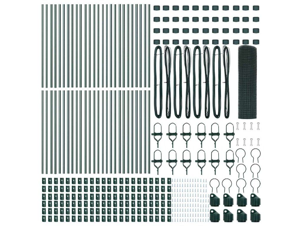 - 1 x Oplocení, 44 x Sloupek, 8 x Úhlový sloupek, 44 x Plastová krytka, 132 x Plastový podpěra napínacího drátu, 8 x Krytka úhlového sloupku, 8 x Hardware úhlového sloupku, 12 x Napínač, 4 x 25 m Vázací drát, 4 x 80 m Napínací drát