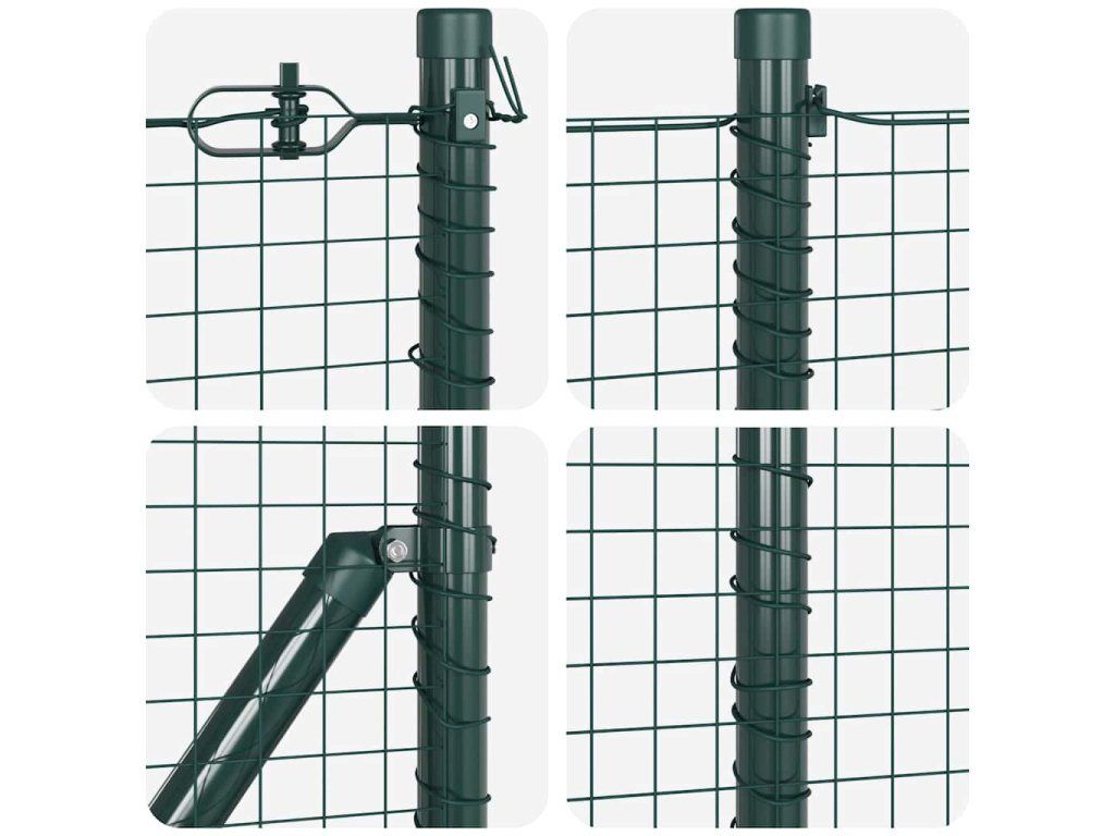 Odolnost proti UV záření: Plot je vyroben z vysoce kvalitní oceli, ošetřené speciálním UV-odolným materiálem, aby odolávalo prodloužené expozici slunečnímu záření. To nejen chrání integritu a vzhled plotu, ale také zajišťuje, že časem zůstane vypadat jako nový. To je ideální pro venkovní použití, protože odolává vyblednutí a udržuje svůj živý vzhled po celý rok.,Povětrnostně odolné panely: Navrženo pro všechny klima, tyto panely poskytují vynikající odolnost proti dešti, větru a sezónním vlivům. Práškovaná povrchová úprava dodává další vrstvu ochrany, což činí tento plot ideálním pro pobřežní, městské nebo venkovské prostředí, kde může být počasí nepředvídatelné. Jeho odolnost zaručuje, že vaše plotové řešení vydrží s minimální údržbou.,Vlastnosti odolné proti korozi: Tento plot nejenže odolává povětrnostním vlivům, ale také odolává rzi a korozi v průběhu času. Specializovaný nátěr aplikovaný na ocel zajišťuje dlouhotrvající výkon bez rzi, což poskytuje klid na duši, že po instalaci bude plot vyžadovat minimální údržbu a udrží svou strukturální integritu po mnoho let.,Jednoduchost sestavení: Ačkoli je sestavení nutné, jednoduché pokyny výrobce činí úkol zvládnutelným pro majitele domů. Jakmile je postavený, plot poskytuje nenápadnou, ale účinnou periferní bariéru, která vytváří bezpečné a přitažlivé prostředí, jež se bezproblémově integruje do zahradních a terasových prostor.,Další zabezpečovací prvek: Pro ty, kdo mají přísné požadavky na zabezpečení, pokyny k sestavení doporučují ujistit se, že dno plotu se dotýká země. To zabraňuje nežádoucím mezerám a nabízí lepší udržení nejen pro domácí mazlíčky a děti, ale také dále zpevňuje váš venkovní prostor proti vniknutí.- Barva: Zelená