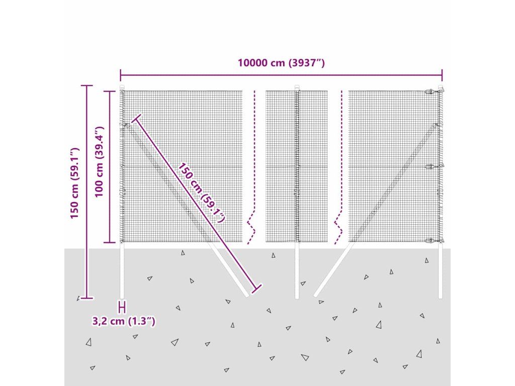 - Celkové rozměry: 10000 x 3.2 x 100 cm (D x Š x V)