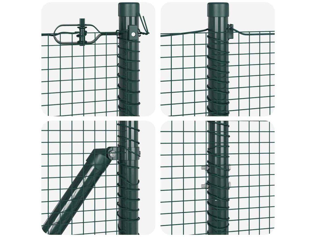 Odolnost proti UV záření: Plot je vyroben z vysoce kvalitní oceli, ošetřené speciálním UV-odolným materiálem, aby odolávalo prodloužené expozici slunečnímu záření. To nejen chrání integritu a vzhled plotu, ale také zajišťuje, že časem zůstane vypadat jako nový. To je ideální pro venkovní použití, protože odolává vyblednutí a udržuje svůj živý vzhled po celý rok.,Povětrnostně odolné panely: Navrženo pro všechny klima, tyto panely poskytují vynikající odolnost proti dešti, větru a sezónním vlivům. Práškovaná povrchová úprava dodává další vrstvu ochrany, což činí tento plot ideálním pro pobřežní, městské nebo venkovské prostředí, kde může být počasí nepředvídatelné. Jeho odolnost zaručuje, že vaše plotové řešení vydrží s minimální údržbou.,Vlastnosti odolné proti korozi: Tento plot nejenže odolává povětrnostním vlivům, ale také odolává rzi a korozi v průběhu času. Specializovaný nátěr aplikovaný na ocel zajišťuje dlouhotrvající výkon bez rzi, což poskytuje klid na duši, že po instalaci bude plot vyžadovat minimální údržbu a udrží svou strukturální integritu po mnoho let.,Jednoduchost sestavení: Ačkoli je sestavení nutné, jednoduché pokyny výrobce činí úkol zvládnutelným pro majitele domů. Jakmile je postavený, plot poskytuje nenápadnou, ale účinnou periferní bariéru, která vytváří bezpečné a přitažlivé prostředí, jež se bezproblémově integruje do zahradních a terasových prostor.,Další zabezpečovací prvek: Pro ty, kdo mají přísné požadavky na zabezpečení, pokyny k sestavení doporučují ujistit se, že dno plotu se dotýká země. To zabraňuje nežádoucím mezerám a nabízí lepší udržení nejen pro domácí mazlíčky a děti, ale také dále zpevňuje váš venkovní prostor proti vniknutí.- Barva: Zelená