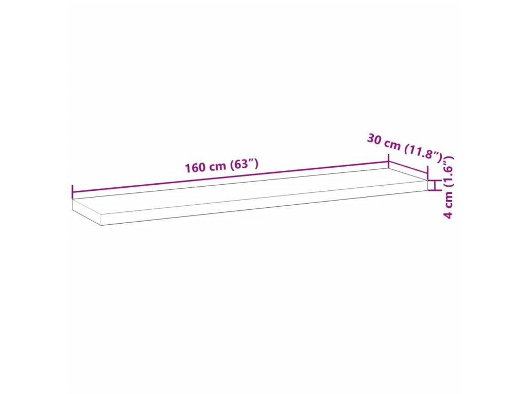 - Povrch napuštěný olejem: Tato police je vyrobena z akáciového dřeva s olejovou povrchovou úpravou, která zvyšuje její odolnost vůči vlhkosti a poškození vodou a zároveň zachovává její jedinečný charakter.