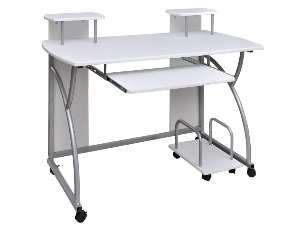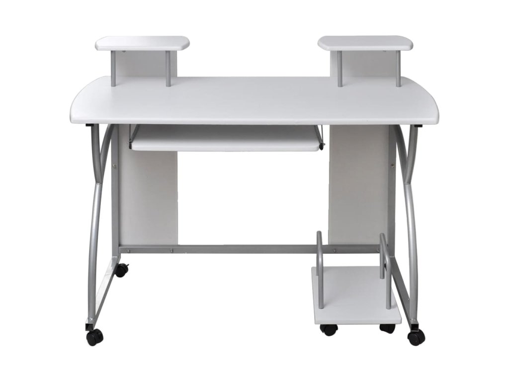 - Volný pohyb: Tento pracovní stůl můžete přemístit kamkoli ve svém pokoji pomocí koleček, která jsou součástí. 2 kolečka mají brzdy, které lze bezpečně zablokovat ve správné poloze.