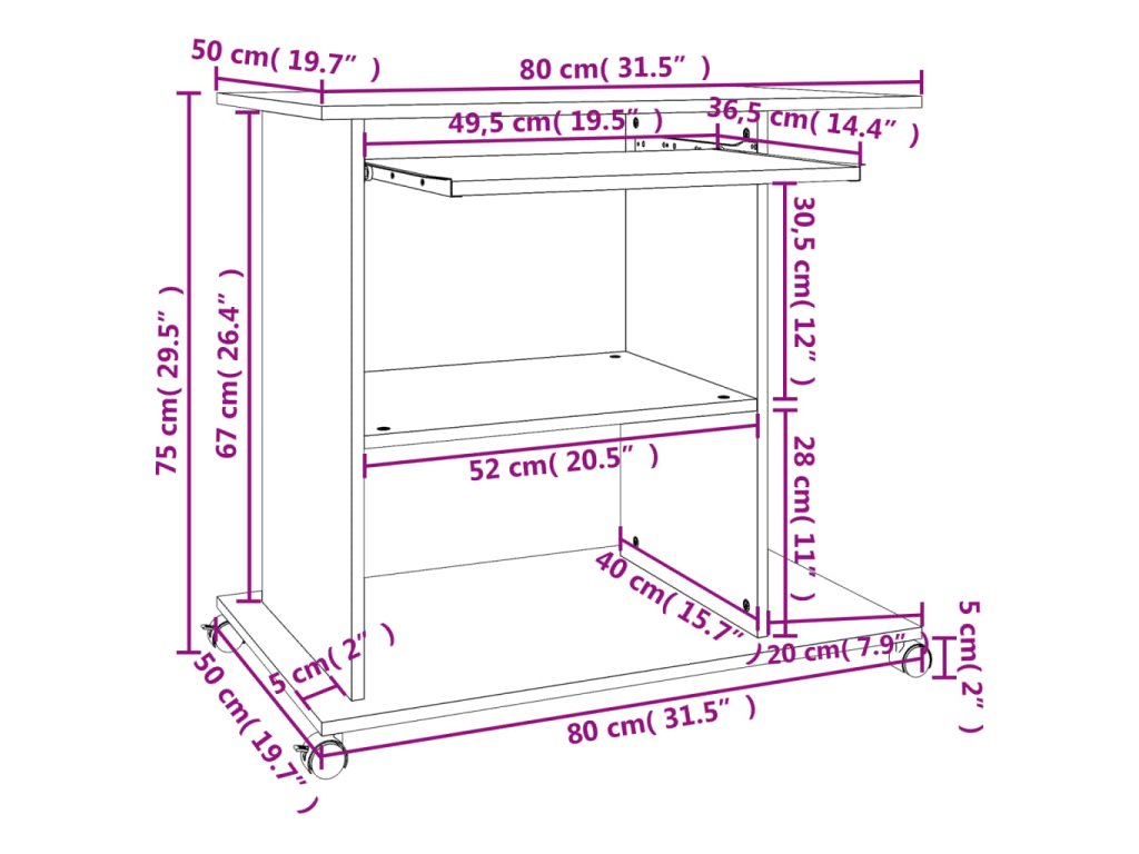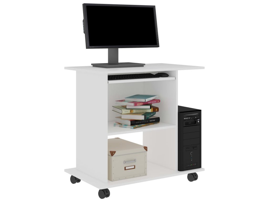 Velká pracovní plocha umožňuje jak pohodlné používání počítače, tak psaní poznámek apod. Tento počítačový stůl je navržený s výsuvnou deskou pro klávesnici, 1 speciální policí pro počítač a 2 policemi pro vaše další počítačové příslušenství. Tato pracovní stanice, vyrobená z kompozitního dřeva, vám vydrží sloužit dlouhé roky. Stůl je vybavený pojezdovými kolečky pro snadné přemisťování.