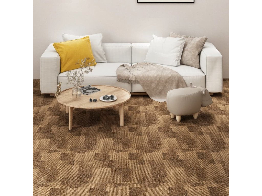 Kobercové podlahové dlaždice jsou vyrobené z tkaniny se smyčkovým vlasem, která je velmi odolná, takže se neopotřebuje ani při častém přecházení. Proto jsou ideální pro chodby. Jelikož jedno balení obsahuje 20 dlaždic, můžete jimi pokrýt plochu 5 metrů čtverečních. A pokud se něco rozlije na jednu dlaždici nebo se poškodí část koberce, můžete namísto celého koberce jednoduše vyměnit pouze jednu dlaždici, jedná se tudíž o praktické a odolné řešení.