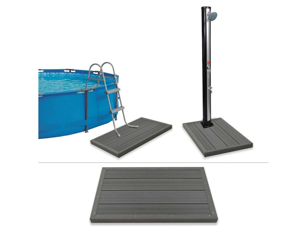 Naši víceúčelovou desku z WPC můžete použít jako pevný podlahový prvek ke své solární sprše, výborně se však také hodí ke stabilizaci vašich bazénových schůdků anebo jako protiskluzová rohožka.