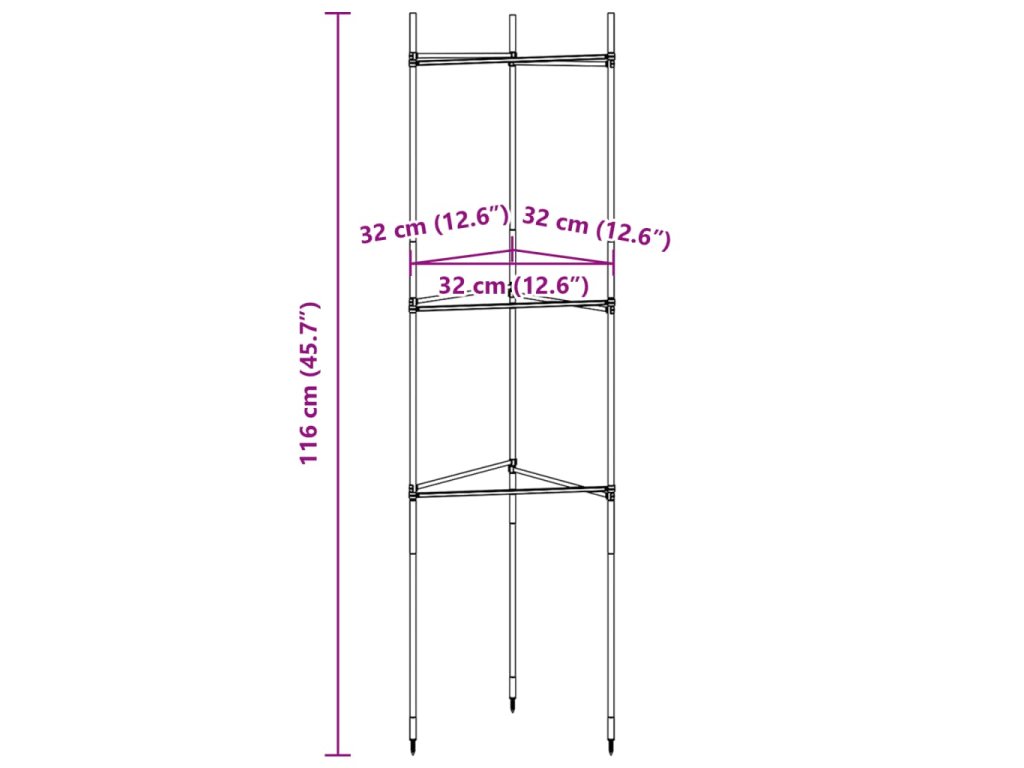 - DIY design: Tato klec na rajčata je velmi všestranná, takže z ní můžete vytvořit různé tvary, nejen trojúhelníky. Podle toho, jak rostliny rostou, upravte jejich výšku, aby měly co nejlepší oporu. Vertikální růst pomáhá zabránit tomu, aby plody a listy zatěžovaly stonky.