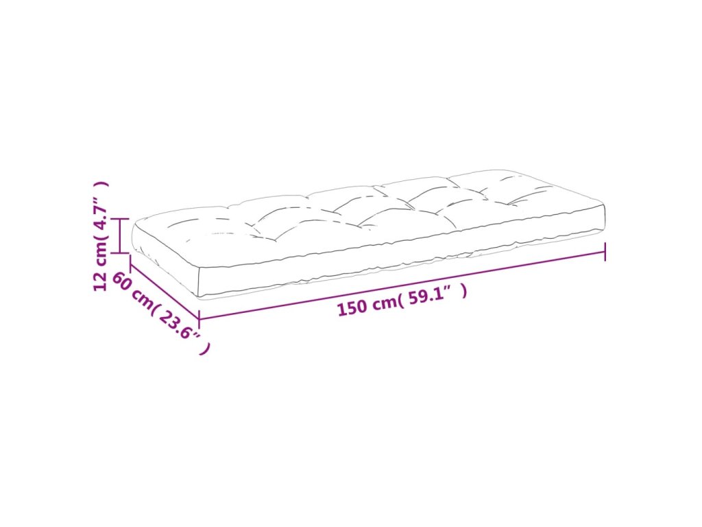 - Rozměry podušky na sedák: 150 x 60 x 12 cm (D x Š x T)