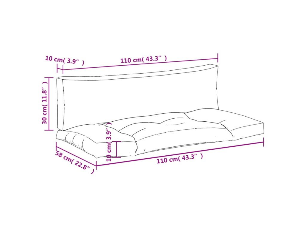 - Rozměry podušky na sedák: 110 x 58 x 10 cm (D x Š x T)