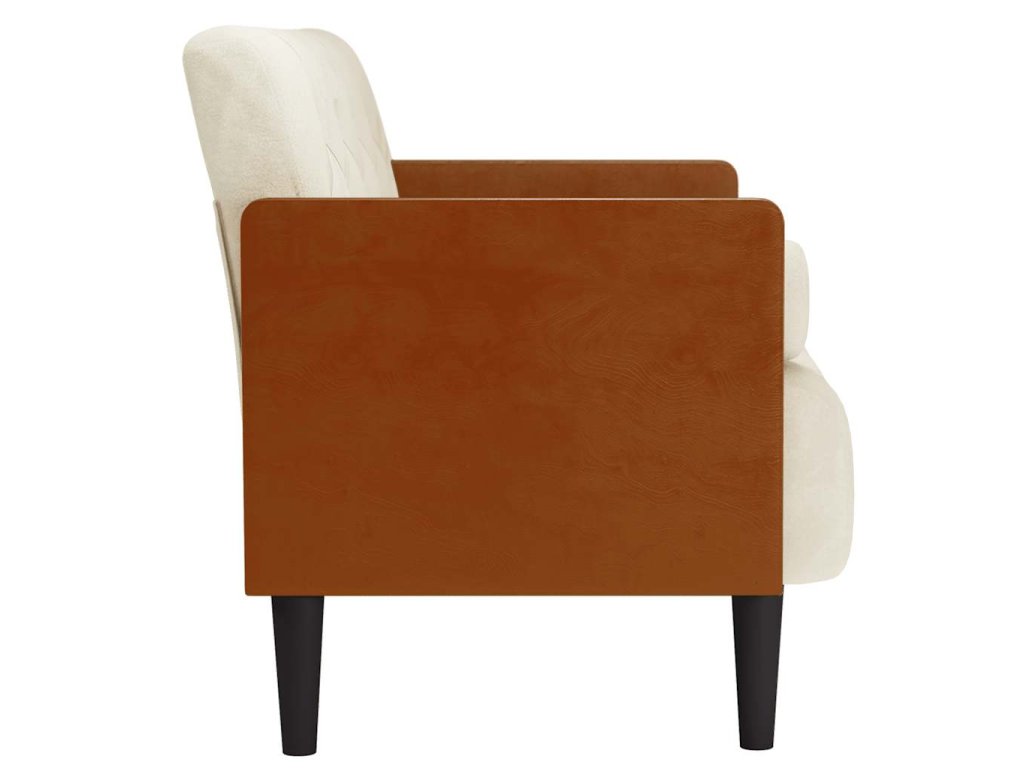 - Poutavý design: Pohovka se vyznačuje kombinací sametové látky a překližkových područek, což umocňuje spojení různých stylistických prvků a přizpůsobuje ji moderním i tradičním interiérům.