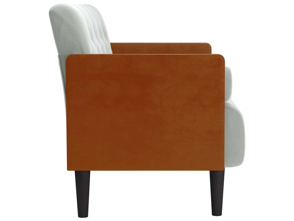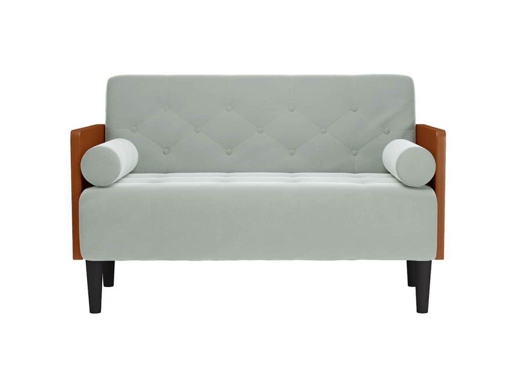 - Poutavý design: Pohovka se vyznačuje kombinací sametové látky a překližkových područek, což umocňuje spojení různých stylistických prvků a přizpůsobuje ji moderním i tradičním interiérům.