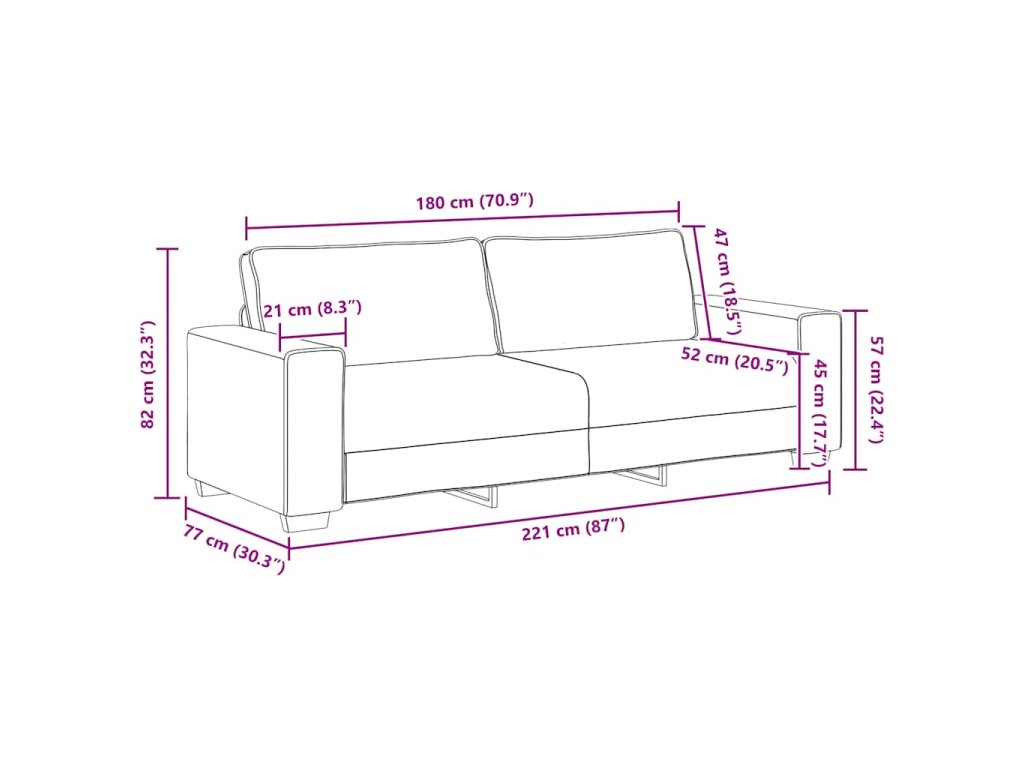 - Celkové rozměry: 221 x 77 x 82 cm (š x h x v)
