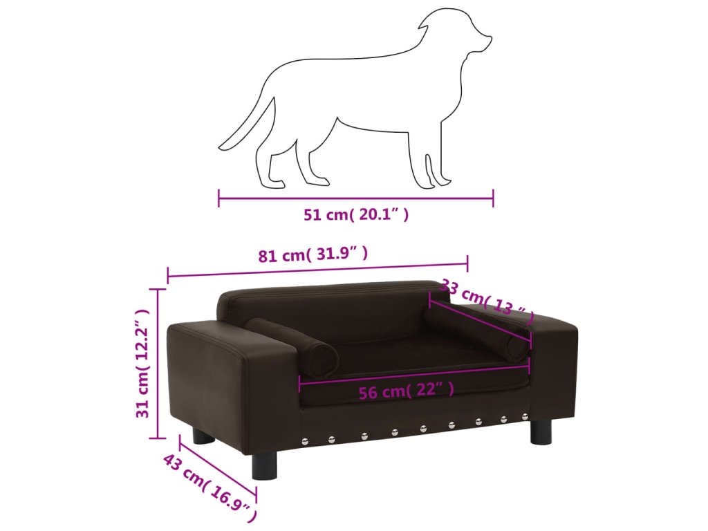 Hustě polstrovaná pohovka má dřevěný rám potažený umělou kůží, která se snadno čistí. Vašim čtyřnohým kamarádům se na ní proto bude moc pěkně odpočívat. Pratelný potah matrace je ušitý z na dotek měkkého plyše pro větší pohodlí. Dřevěné nohy s protiskluzovým designem zajišťují stabilitu a pevnost celé konstrukce. Vnější tělo je také mimořádně odolné, a tak může váš pejsek relaxovat v naprostém bezpečí.