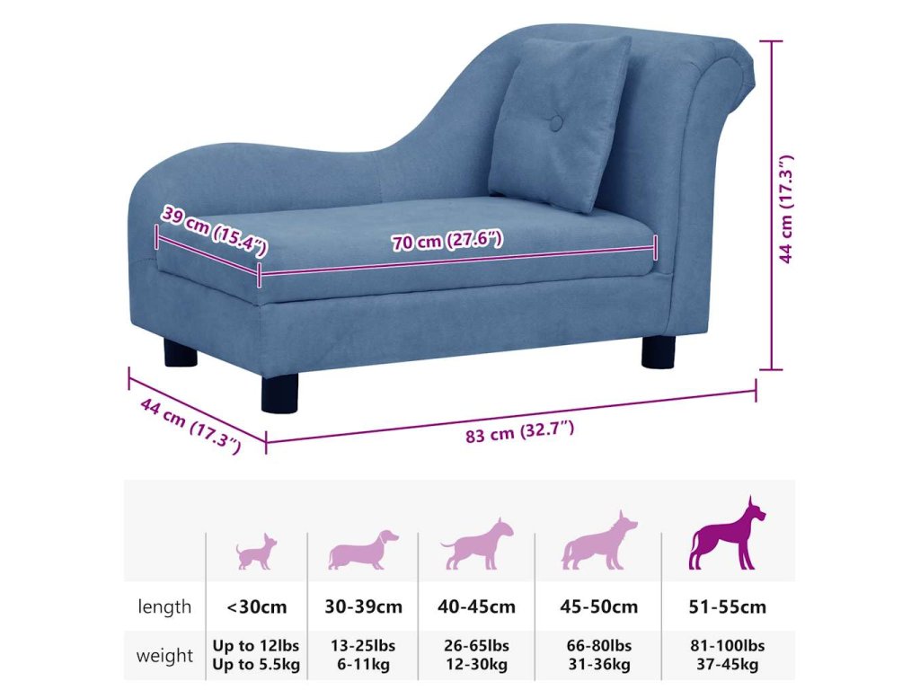 Hustě polstrovaná pohovka pro domácí mazlíčky má dřevěný rám potažený měkkým plyšem, aby se na ní vašim čtyřnohým kamarádům pohodlně odpočívalo. Nohy s protiskluzovým designem zajišťují stabilitu a pevnost celé konstrukce. Polštář navíc poskytuje oporu krku a zad pro absolutní pohodlí. Potah matrace lze vyprat, aby pohovka zůstala krásně svěží.