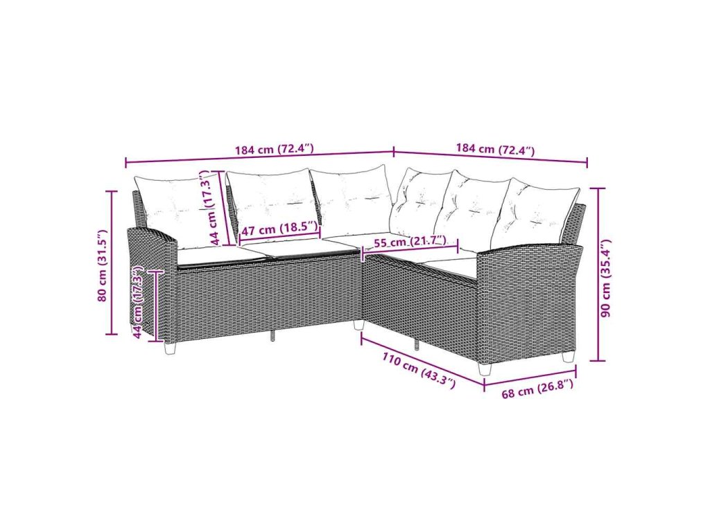 - Rozměry: 184 x 184 x 80 cm (š x h x v)
