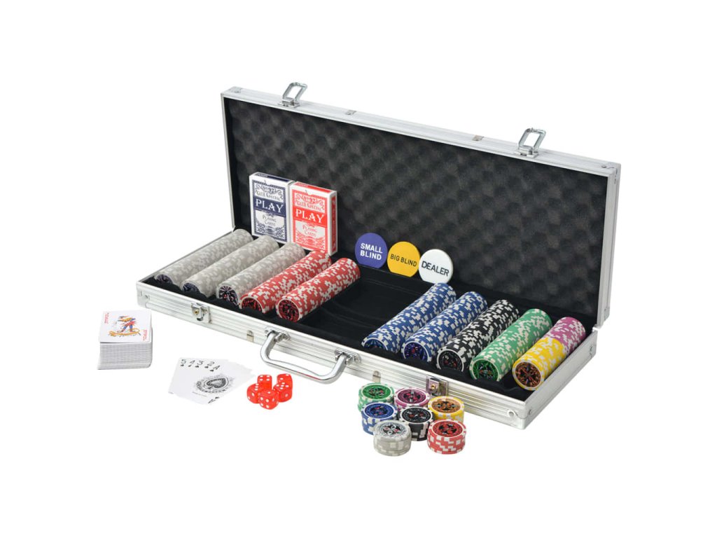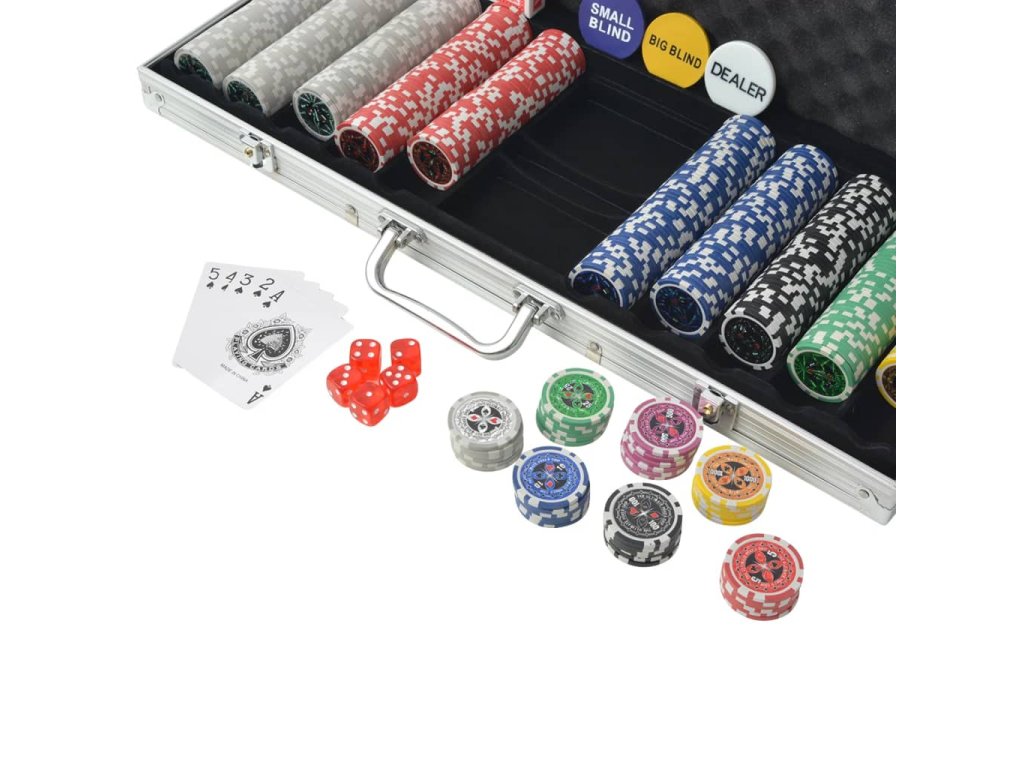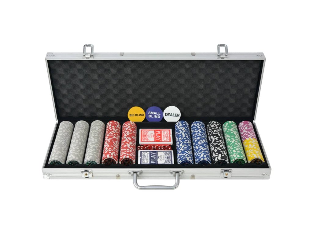 Tato sada obsahuje 5 kasinových kostek, 2 balíčky karet, 1 žeton small blind, 1 žeton big blind, 1 žeton Dealer a 500 laserových žetonů. Tato sada je dodávána v hliníkovém pouzdře.
