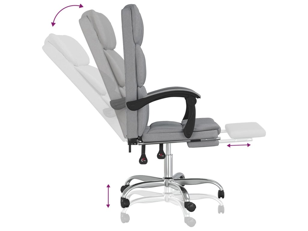 - Nastavitelné opěradlo a výška: Židle je speciálně navržena tak, aby se dala sklápět a vy jste si mohli opěradlo i opěrku nohou sami nastavit, jak vám to bude nejlépe vyhovovat. Pomocí páčky si můžete nastavit výšku sedáku podle vašich představ.