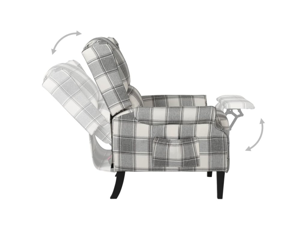 Polohovací křeslo s látkovým potahem a dřevěnými nohami je nejen stabilní, ale také měkké pro příjemné sezení. Opěradlo lze sklápět dozadu a podnožku zvedat nahoru, abyste se mohli pohodlně natáhnout.