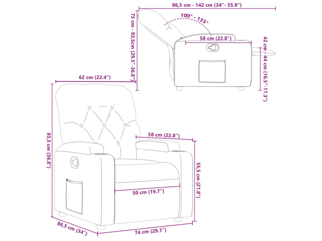 - Funkce ručního sklápění: Toto polohovací křeslo má na pravé straně páčku. Jednoduchým zatažením za páčku můžete ručně nastavit opěrku nohou a opěradlo do libovolné polohy podle svého pohodlí. Tato funkce umožňuje maximální náklon 135 stupňů. Opěradlo se navíc může snadným zatažením za páčku rychle vrátit do původní polohy.