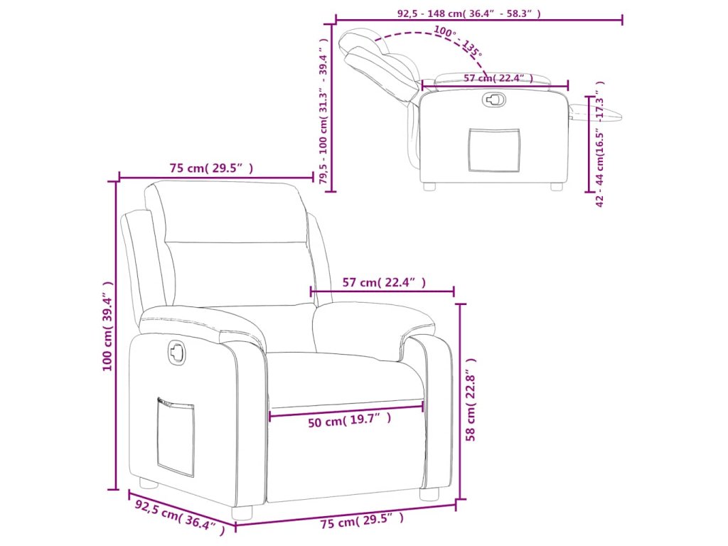 - Funkce ručního sklápění: Toto polohovací křeslo má na pravé straně páčku. Jednoduchým zatažením za páčku můžete ručně nastavit opěrku nohou a opěradlo do libovolné polohy podle svého pohodlí. Tato funkce umožňuje maximální náklon 135 stupňů. Opěradlo se navíc může snadným zatažením za páčku rychle vrátit do původní polohy.