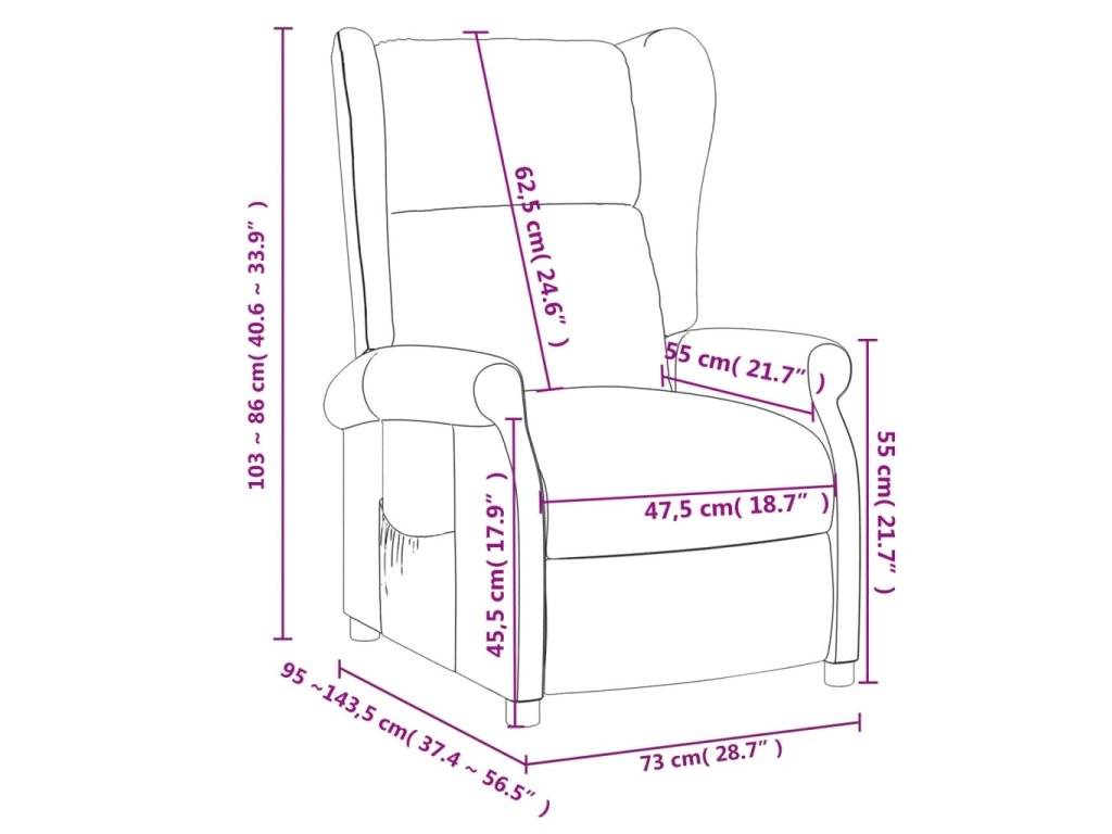 - Rozměry při poloze vsedě: 73 x 95 x 103 cm (Š x H x V)