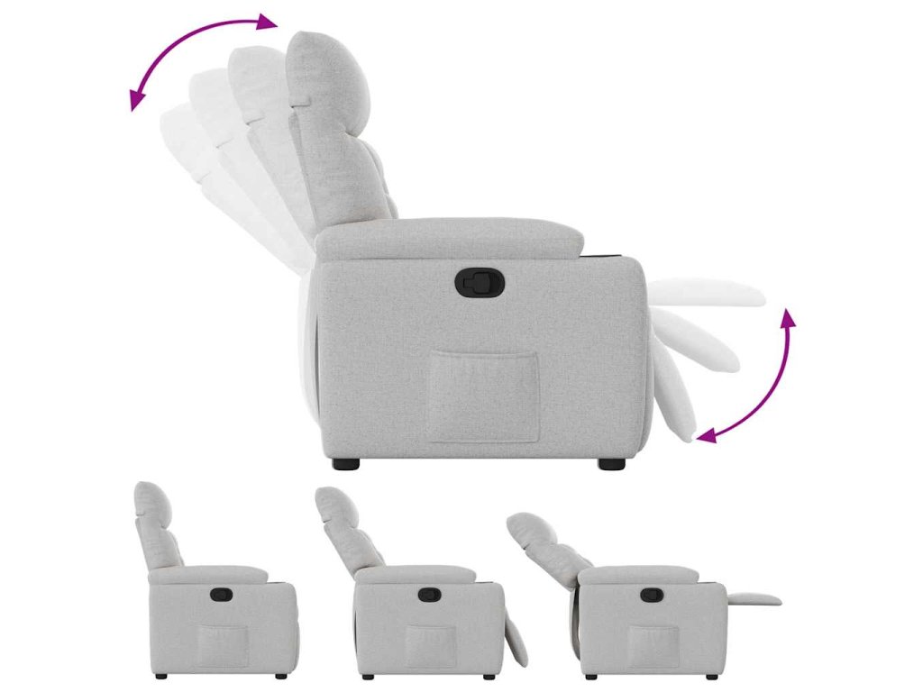 - Funkce ručního sklápění: Toto polohovací křeslo má na pravé straně páčku. Jednoduchým zatažením za páčku můžete ručně nastavit opěrku nohou a opěradlo do libovolné polohy podle svého pohodlí. Tato funkce umožňuje maximální náklon 135 stupňů. Opěradlo se navíc může snadným zatažením za páčku rychle vrátit do původní polohy.