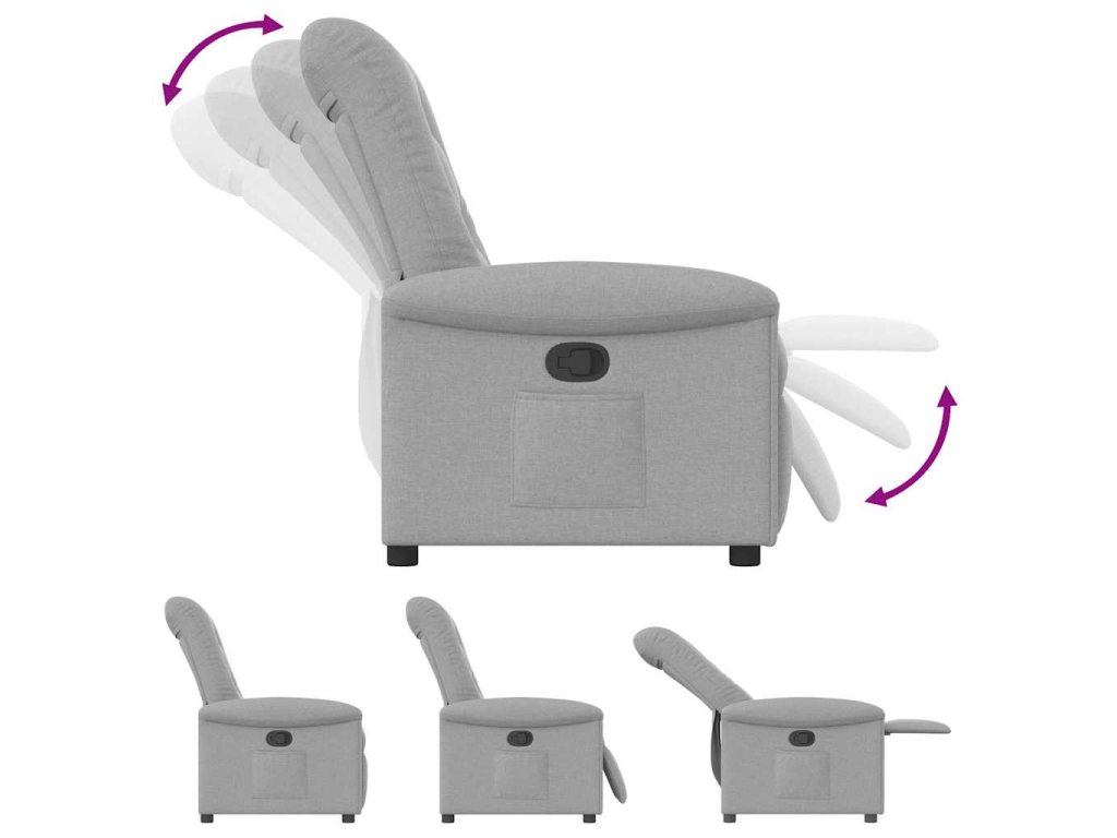 - Funkce ručního sklápění: Toto polohovací křeslo má na pravé straně páčku. Jednoduchým zatažením za páčku můžete ručně nastavit opěrku nohou a opěradlo do libovolné polohy podle svého pohodlí. Tato funkce umožňuje maximální náklon 135 stupňů. Opěradlo se navíc může snadným zatažením za páčku rychle vrátit do původní polohy.