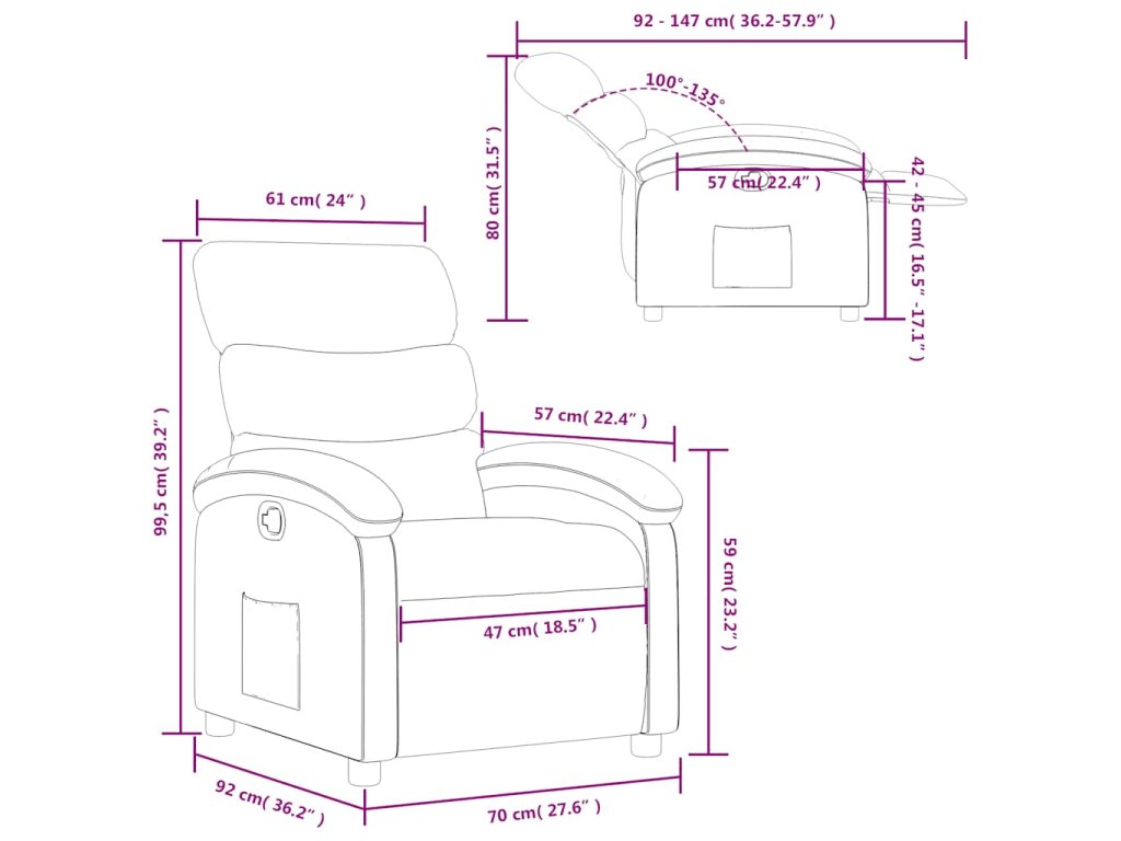 - Funkce ručního sklápění: Toto polohovací křeslo má na pravé straně páčku. Jednoduchým zatažením za páčku můžete ručně nastavit opěrku nohou a opěradlo do libovolné polohy podle svého pohodlí. Tato funkce umožňuje maximální náklon 135 stupňů. Opěradlo se navíc může snadným zatažením za páčku rychle vrátit do původní polohy.