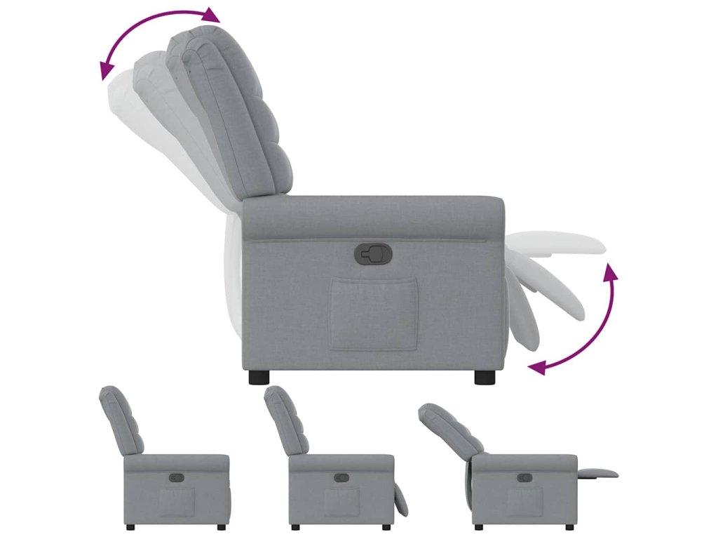 - Funkce ručního sklápění: Toto polohovací křeslo má na pravé straně páčku. Jednoduchým zatažením za páčku můžete ručně nastavit opěrku nohou a opěradlo do libovolné polohy podle svého pohodlí. Tato funkce umožňuje maximální náklon 135 stupňů. Opěradlo se navíc může snadným zatažením za páčku rychle vrátit do původní polohy.
