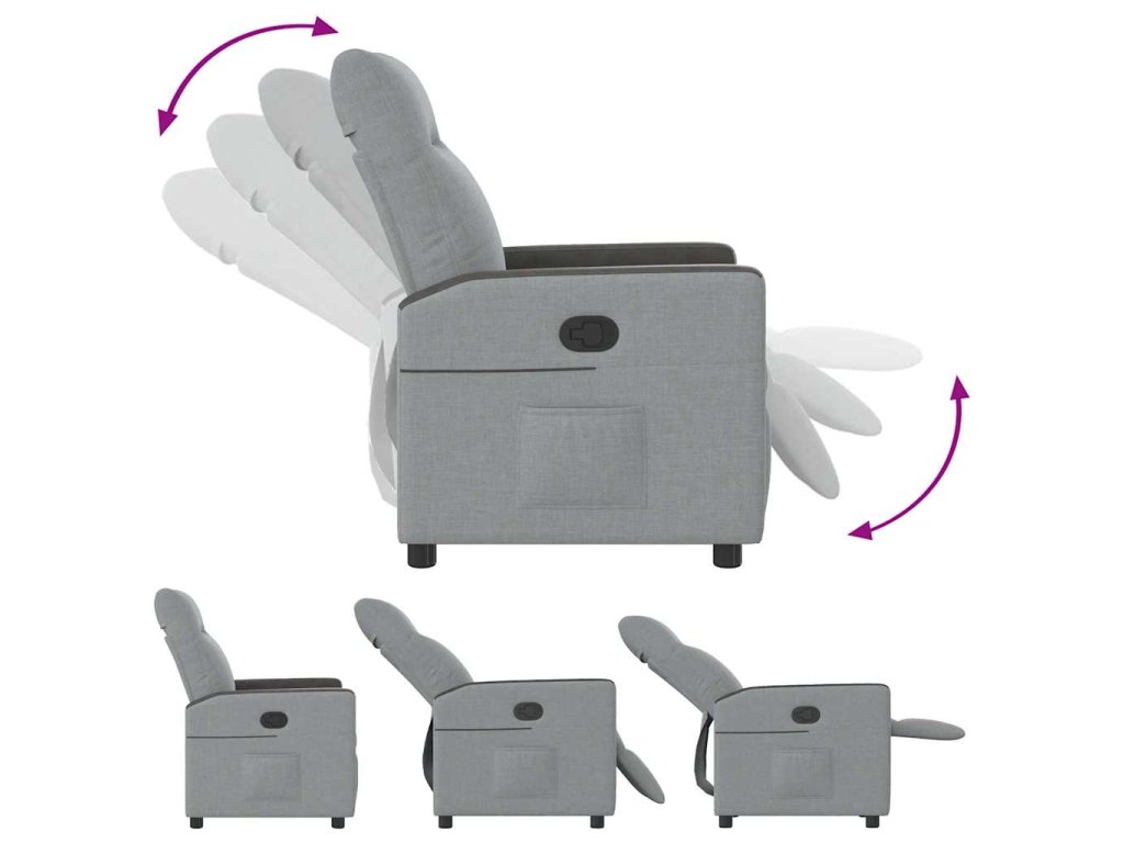 - Funkce ručního sklápění: Toto polohovací křeslo má na pravé straně páčku. Jednoduchým zatažením za páčku můžete ručně nastavit opěrku nohou a opěradlo do libovolné polohy podle svého pohodlí. Tato funkce umožňuje maximální náklon 135 stupňů. Opěradlo se navíc může snadným zatažením za páčku rychle vrátit do původní polohy.