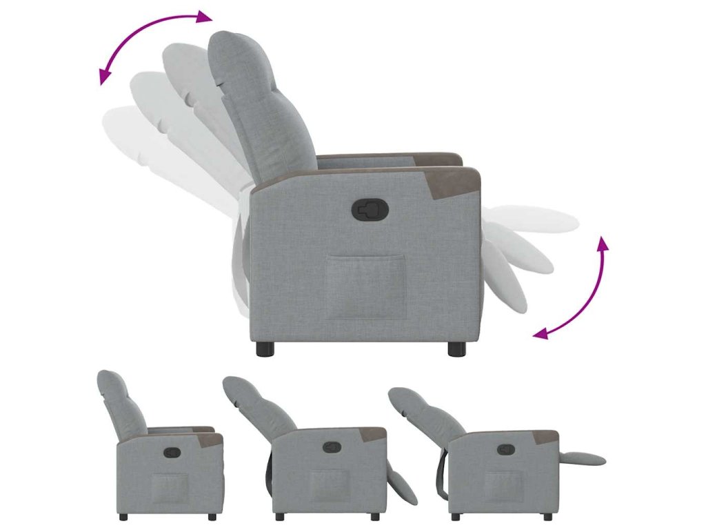 - Funkce ručního sklápění: Toto polohovací křeslo má na pravé straně páčku. Jednoduchým zatažením za páčku můžete ručně nastavit opěrku nohou a opěradlo do libovolné polohy podle svého pohodlí. Tato funkce umožňuje maximální náklon 135 stupňů. Opěradlo se navíc může snadným zatažením za páčku rychle vrátit do původní polohy.