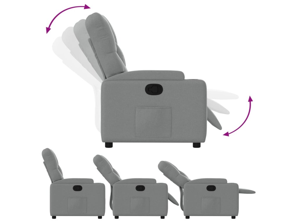 - Funkce ručního sklápění: Toto polohovací křeslo má na pravé straně páčku. Jednoduchým zatažením za páčku můžete ručně nastavit opěrku nohou a opěradlo do libovolné polohy podle svého pohodlí. Tato funkce umožňuje maximální náklon 135 stupňů. Opěradlo se navíc může snadným zatažením za páčku rychle vrátit do původní polohy.