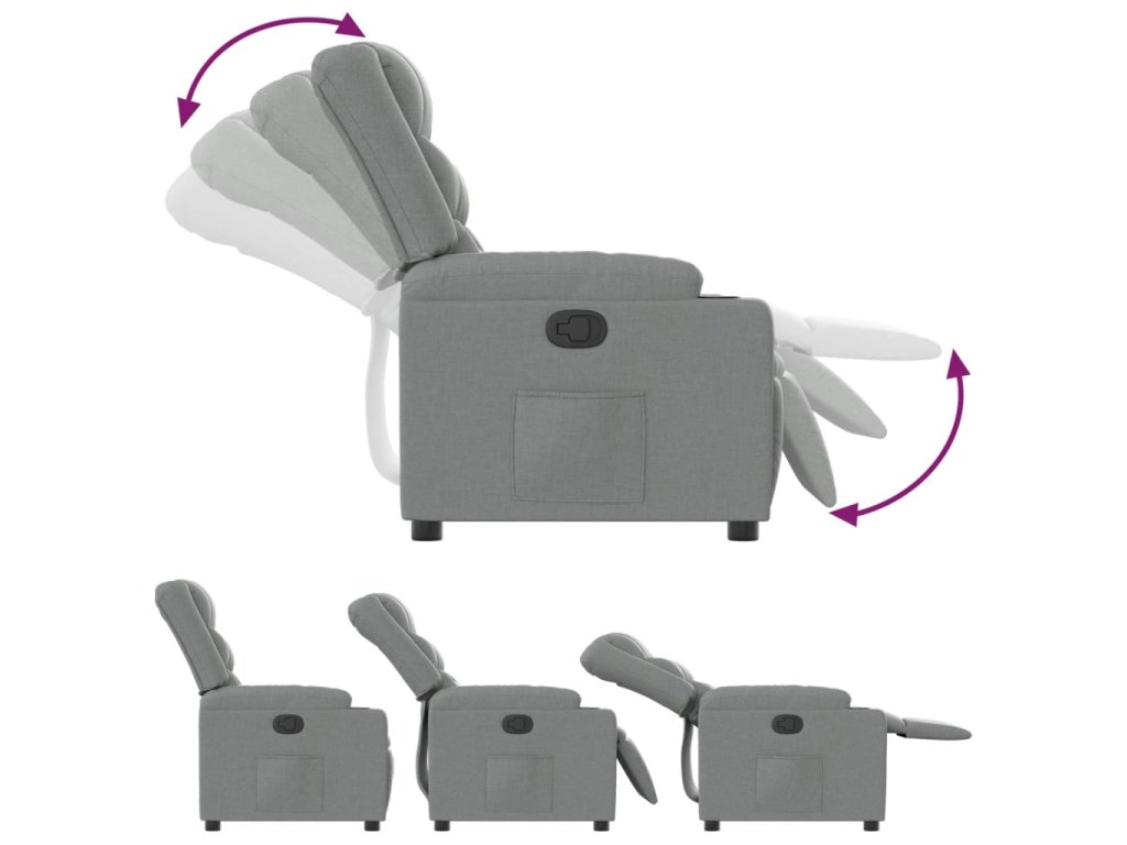 - Funkce ručního sklápění: Toto polohovací křeslo má na pravé straně páčku. Jednoduchým zatažením za páčku můžete ručně nastavit opěrku nohou a opěradlo do libovolné polohy podle svého pohodlí. Tato funkce umožňuje maximální náklon 135 stupňů. Opěradlo se navíc může snadným zatažením za páčku rychle vrátit do původní polohy.