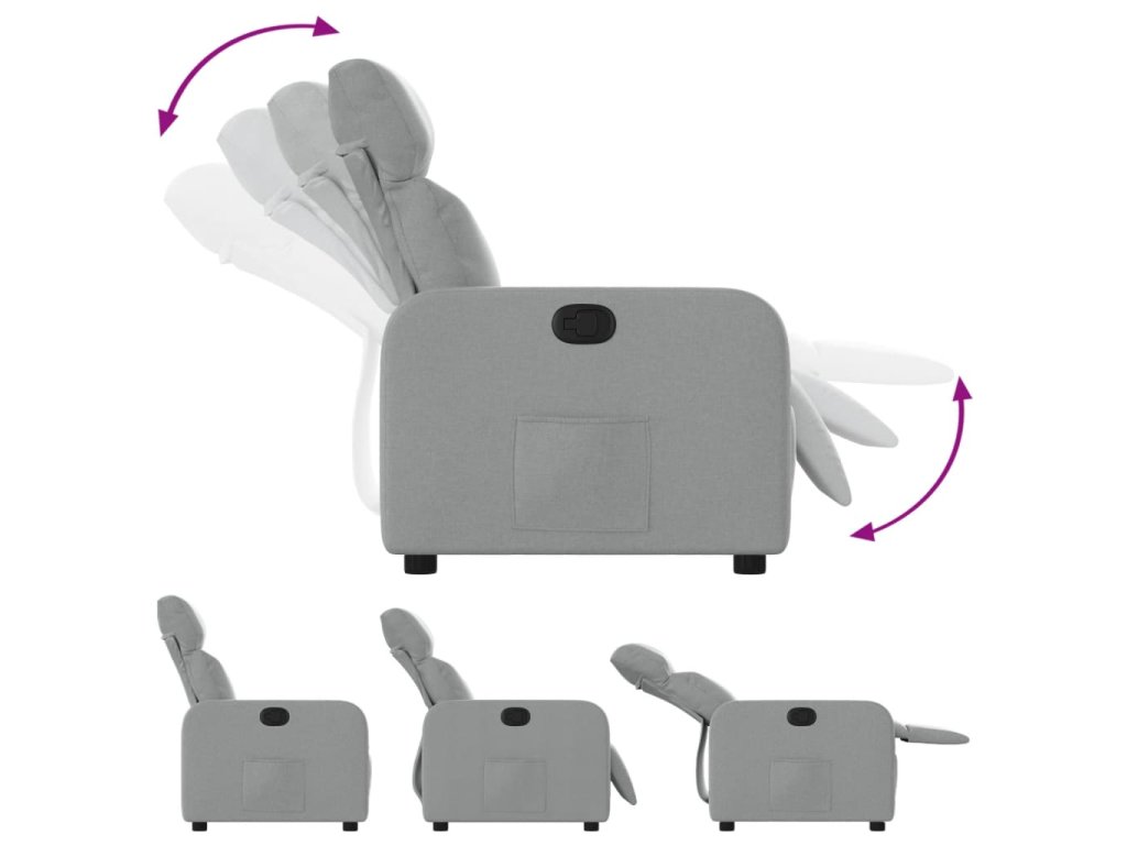 - Funkce ručního sklápění: Toto polohovací křeslo má na pravé straně páčku. Jednoduchým zatažením za páčku můžete ručně nastavit opěrku nohou a opěradlo do libovolné polohy podle svého pohodlí. Tato funkce umožňuje maximální náklon 135 stupňů. Opěradlo se navíc může snadným zatažením za páčku rychle vrátit do původní polohy.