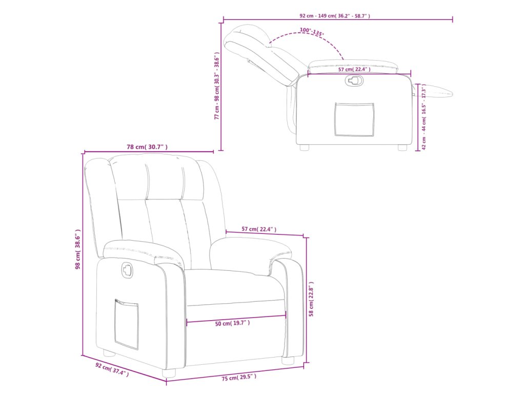 - Funkce ručního sklápění: Toto polohovací křeslo má na pravé straně páčku. Jednoduchým zatažením za páčku můžete ručně nastavit opěrku nohou a opěradlo do libovolné polohy podle svého pohodlí. Tato funkce umožňuje maximální náklon 135 stupňů. Opěradlo se navíc může snadným zatažením za páčku rychle vrátit do původní polohy.