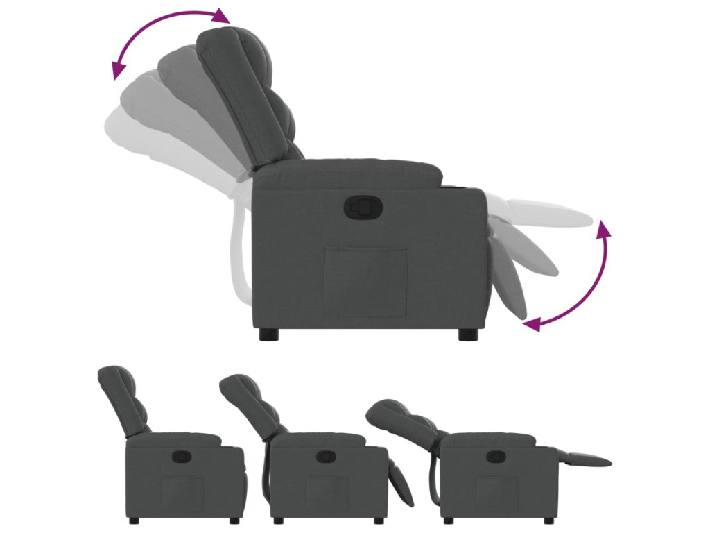 - Funkce ručního sklápění: Toto polohovací křeslo má na pravé straně páčku. Jednoduchým zatažením za páčku můžete ručně nastavit opěrku nohou a opěradlo do libovolné polohy podle svého pohodlí. Tato funkce umožňuje maximální náklon 135 stupňů. Opěradlo se navíc může snadným zatažením za páčku rychle vrátit do původní polohy.