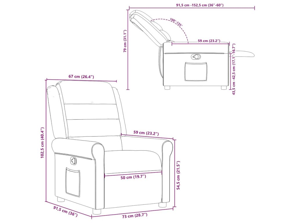 - Funkce ručního sklápění: Toto polohovací křeslo má na pravé straně páčku. Jednoduchým zatažením za páčku můžete ručně nastavit opěrku nohou a opěradlo do libovolné polohy podle svého pohodlí. Tato funkce umožňuje maximální náklon 135 stupňů. Opěradlo se navíc může snadným zatažením za páčku rychle vrátit do původní polohy.
