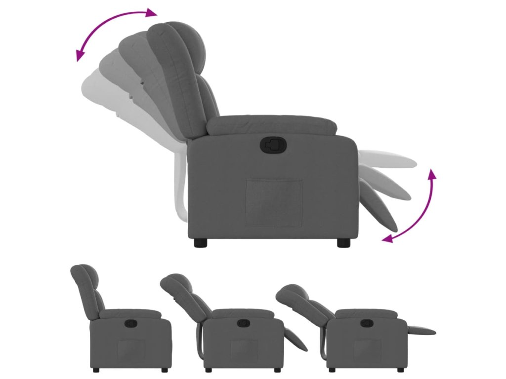 - Funkce ručního sklápění: Toto polohovací křeslo má na pravé straně páčku. Jednoduchým zatažením za páčku můžete ručně nastavit opěrku nohou a opěradlo do libovolné polohy podle svého pohodlí. Tato funkce umožňuje maximální náklon 135 stupňů. Opěradlo se navíc může snadným zatažením za páčku rychle vrátit do původní polohy.
