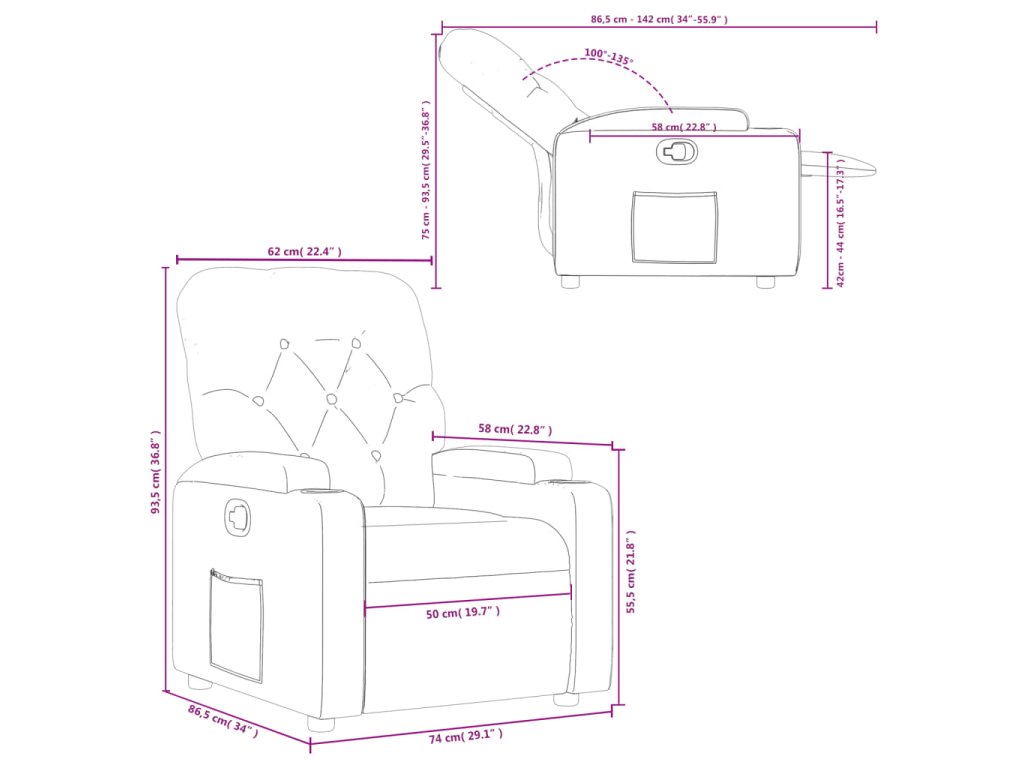 - Funkce ručního sklápění: Toto polohovací křeslo má na pravé straně páčku. Jednoduchým zatažením za páčku můžete ručně nastavit opěrku nohou a opěradlo do libovolné polohy podle svého pohodlí. Tato funkce umožňuje maximální náklon 135 stupňů. Opěradlo se navíc může snadným zatažením za páčku rychle vrátit do původní polohy.